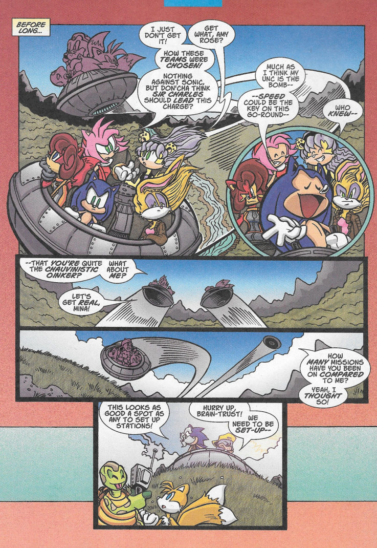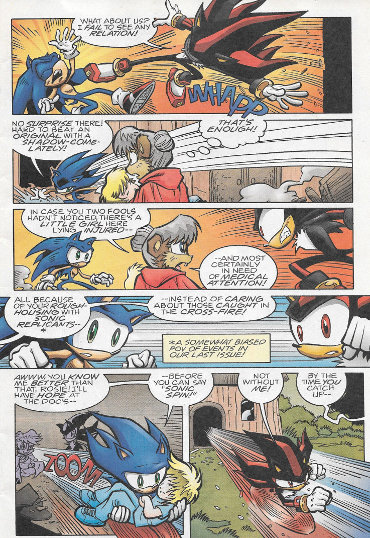 Coinciding with the eagerly awaited Shadow the Hedgehog video game from Sega, it's the eagerly awaited return of Sonic's dark counterpart, Shadow! After the huge fan response to the earth-shattering events in issues #146-149, Shadow returns to his mission of learning the truth of his hidden past... even if he has to destroy Sonic and the evil Dr. Robotnik to get it! This time, however, a bigger unknown threat lurks in the background, waiting to destroy them all! One of the biggest, boldest twists ever to hit the Sonic comic-verse happens here!