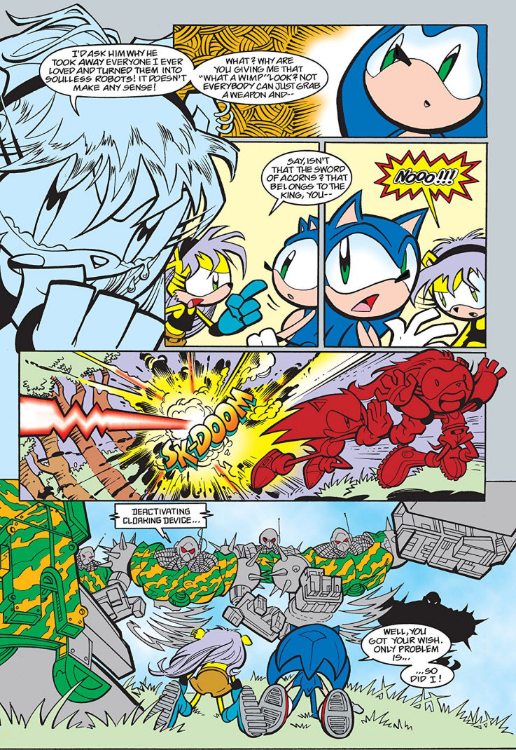 Sonic has stolen the Sword of Acorns! What's worse, he and Mina have just run into an ambush! As the super-elite COM-Bots close in for the kill, the Sword of Acorns falls into enemy hands, and Mina reveals a surprising new side of herself!