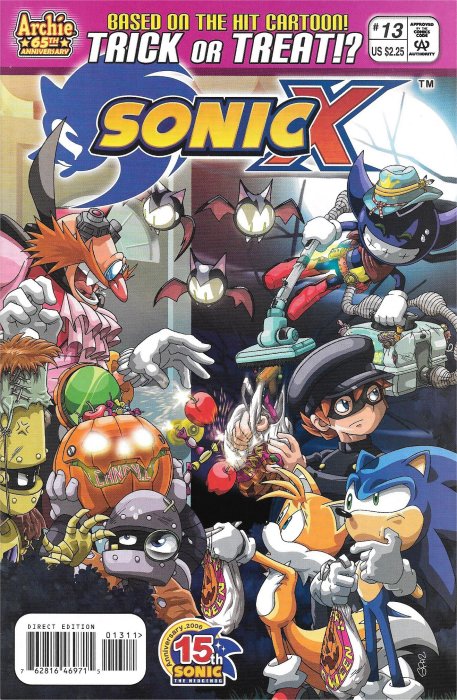 Just in time for Halloween, this issue is full of tricks but not many treats for our heroes. After his best friend Tails is tricked and blamed for unleashing the devastating power of an alien space craft upon Station Square city, Sonic races to his aid, but both of them end up apprehended by a shadowy government agency. Trapped in jail alongside the villainous Dr. Eggman, our heroes remain helpless as the spookiest ghosts of all time, King Boom Boo and his creepy cohorts, threaten their friends' peaceful existence! Can they bust out... and bust the ghosts... before it's too late?