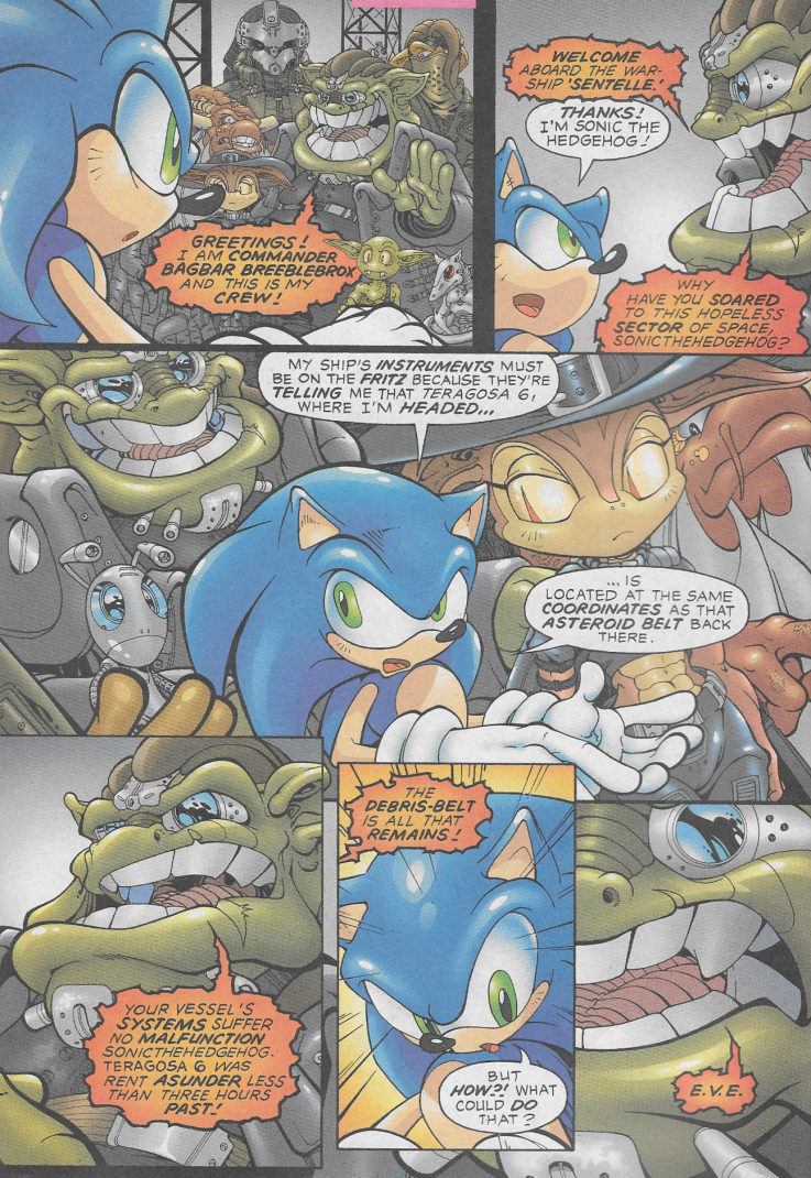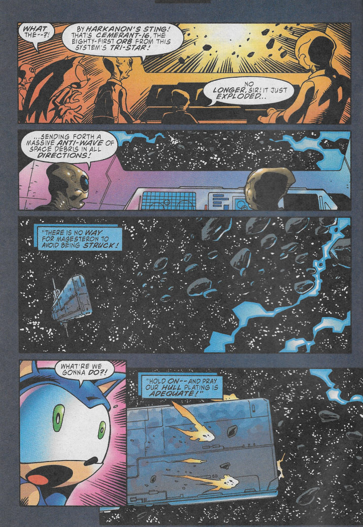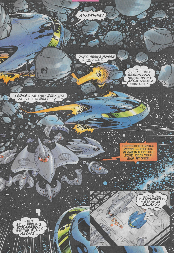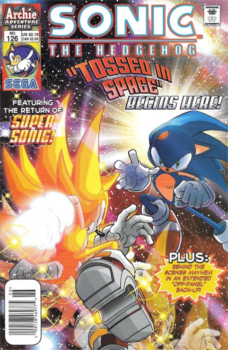 Don't miss the thrilling return of Shadow, the popular character from the game, Sonic Adventure 2! But that is the least of Sonic's problems as aliens, known only as the Xorda, surround the entire planet of Mobius. What they want and why, will be the talk of many Sonic fans for many issues to come! This 2-part saga concludes in SONIC #125, the 10th Anniversary Issue of the Sonic comic book!