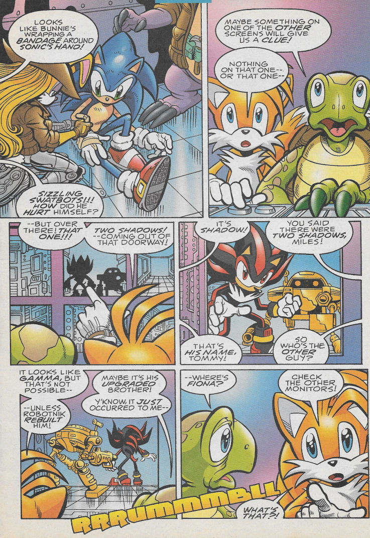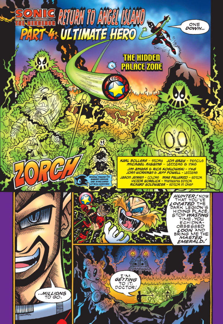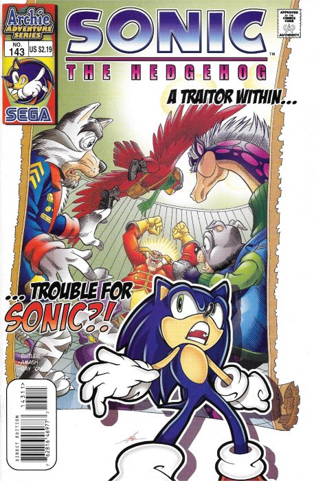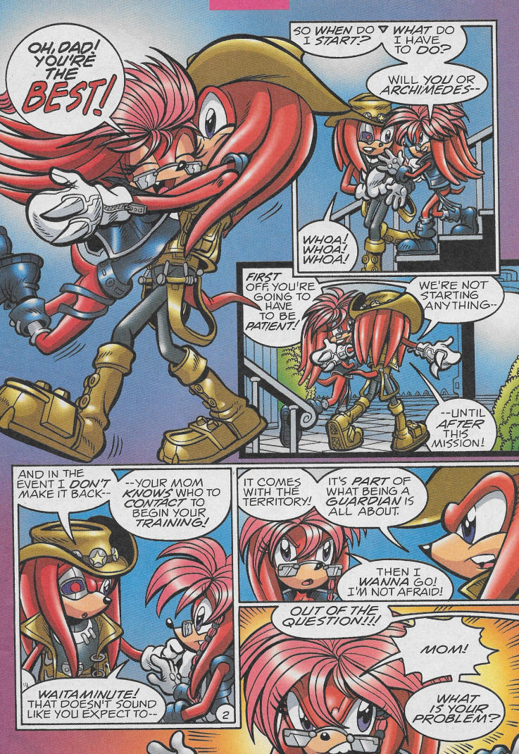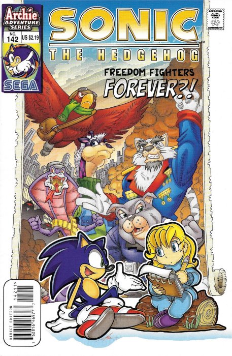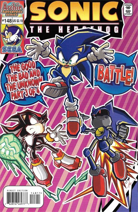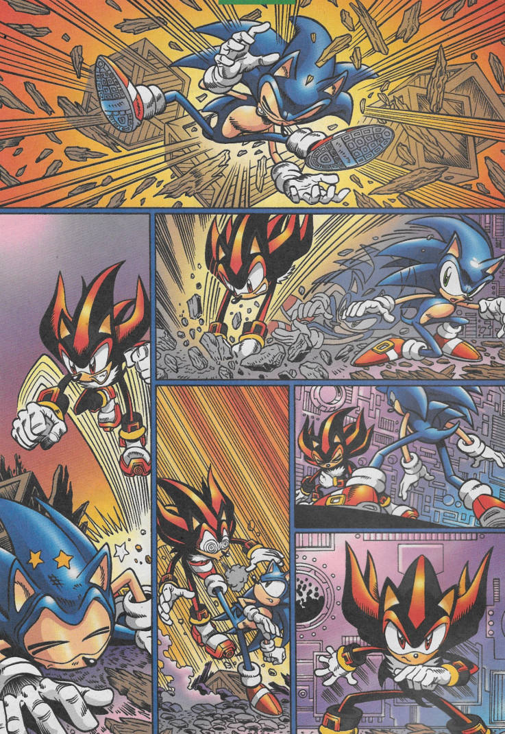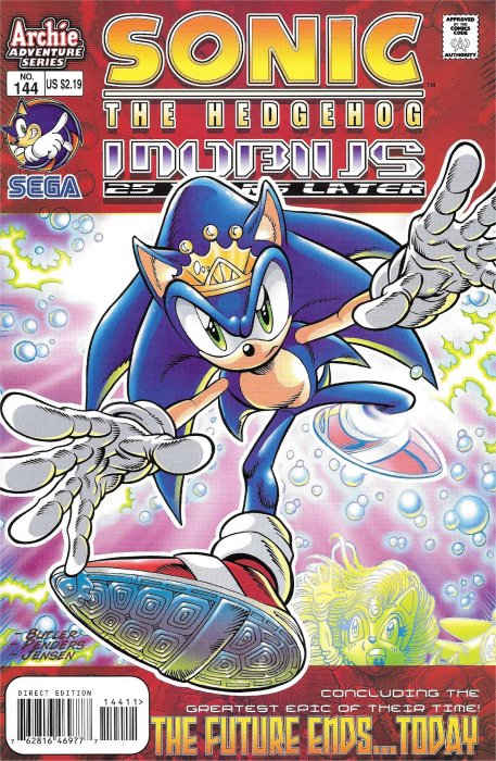 The popular series-within-a-series... and the very future itself... takes center stage as our heroes valiantly try to repair the ripped rift in time! Using a long departed evil doctor's greatest unused device, can even the combined might and intellect of King Sonic, Guardian Knuckles, and the scientific geniuses Rotor and Cobar, be enough to fix time .. in time?! And what part does a mysterious stowaway have to play in this saga? No fan of the Sonic mythos should miss this one!