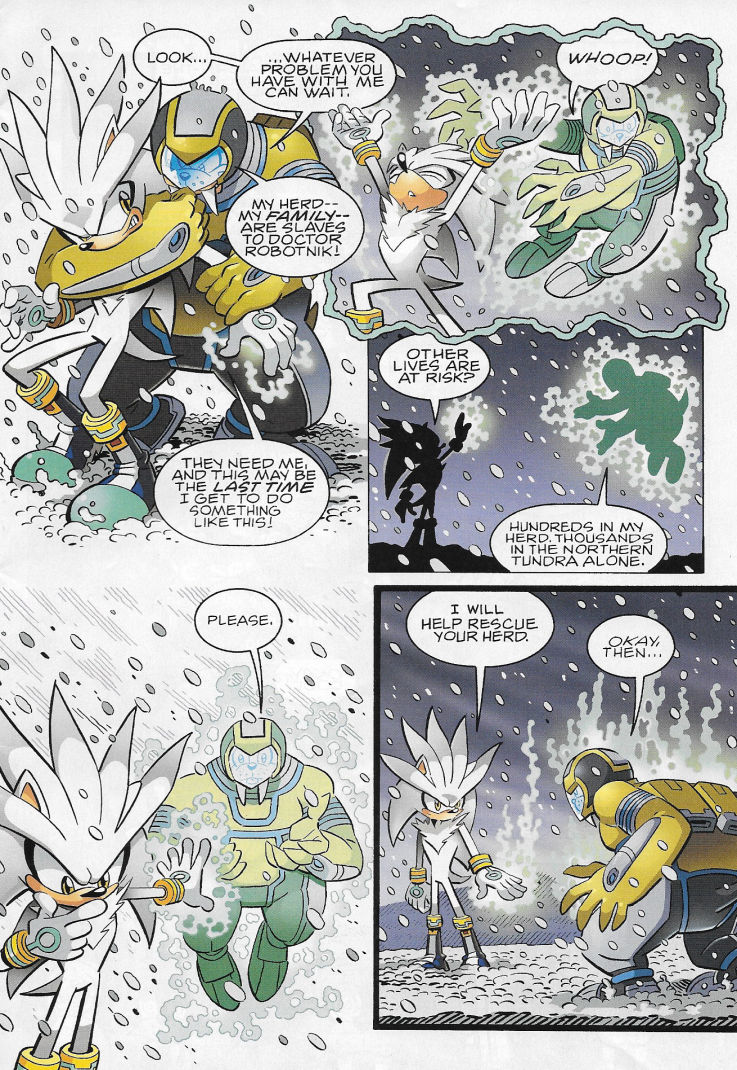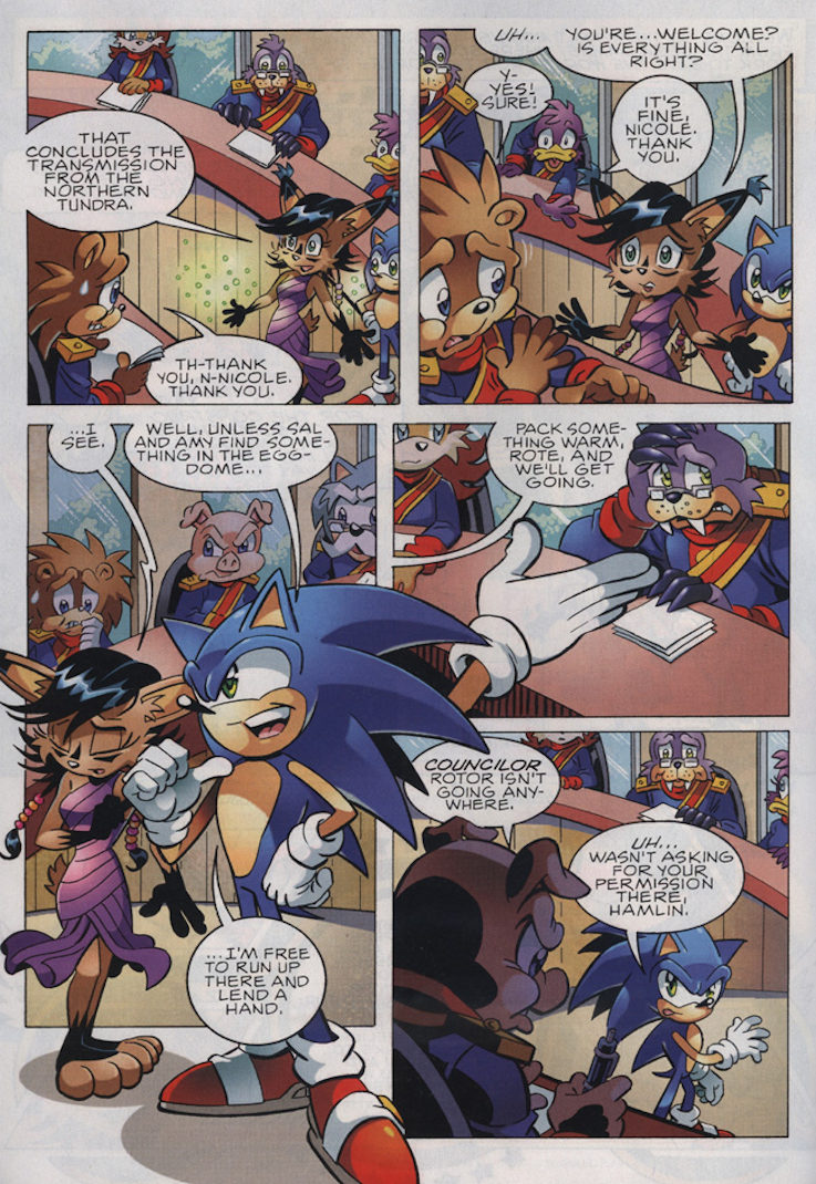 Iron Nicole reveals a secret that the Iron Queen never saw coming... and now all bets are off as the duel to end them all begins! But that's just the half of it, as friends, foes and perhaps a bystander or two enter the fray with freedom hanging in the balance! Don't miss this thrill-packed issue filled with one great Sonicverse character after another including Monkey Khan, Tails, the Iron King, Espio, Snively Robotnik, Geoffrey, Lien-Da, Amy, Antoine and more! Don't miss the explosive action!