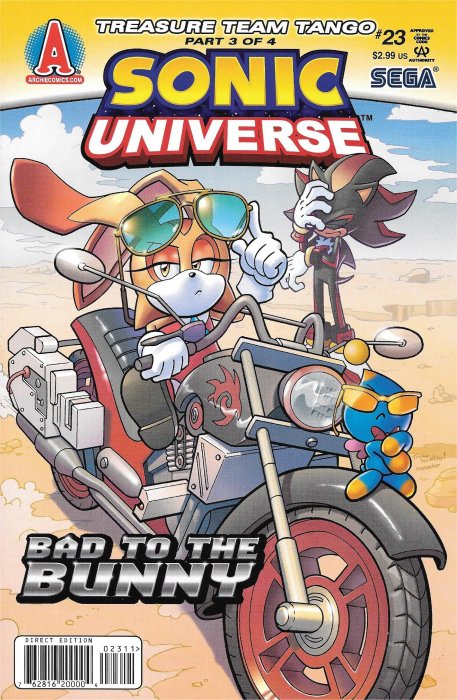 "Treasure Team Tango, Part 4 of 4: The Parada" The wild grand finale to our craziest story yet! Four teams vie for the precious Sol Emerald! Will Team Rose help Blaze save her world? Will Team Dark beat them into submission? Will Nack’s “Team Hooligan” cash it in, or will the Babylon Rogues beat them to it? You can’t miss this blockbuster conclusion! |