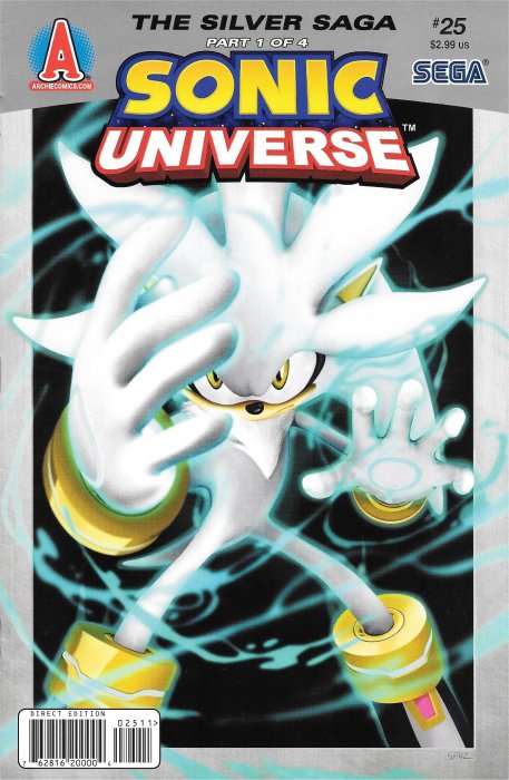 "Fractured Mirror, Part 1 of 4: Through the Looking Glass" The SILVER SAGA arrives! Featuring a special "Anniversary Edition" shining silver cover, the highly anticipated four-part adventure begins this month. A strange new threat arrives in Silver the Hedgehog's time! Can our young hero battle back this mysterious force? Plus the dramatic return of the ultimate evil! It's the beginning of an epic new struggle - don't miss it! |