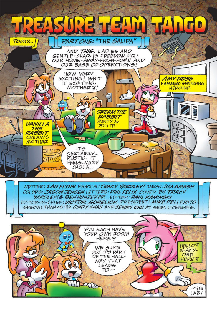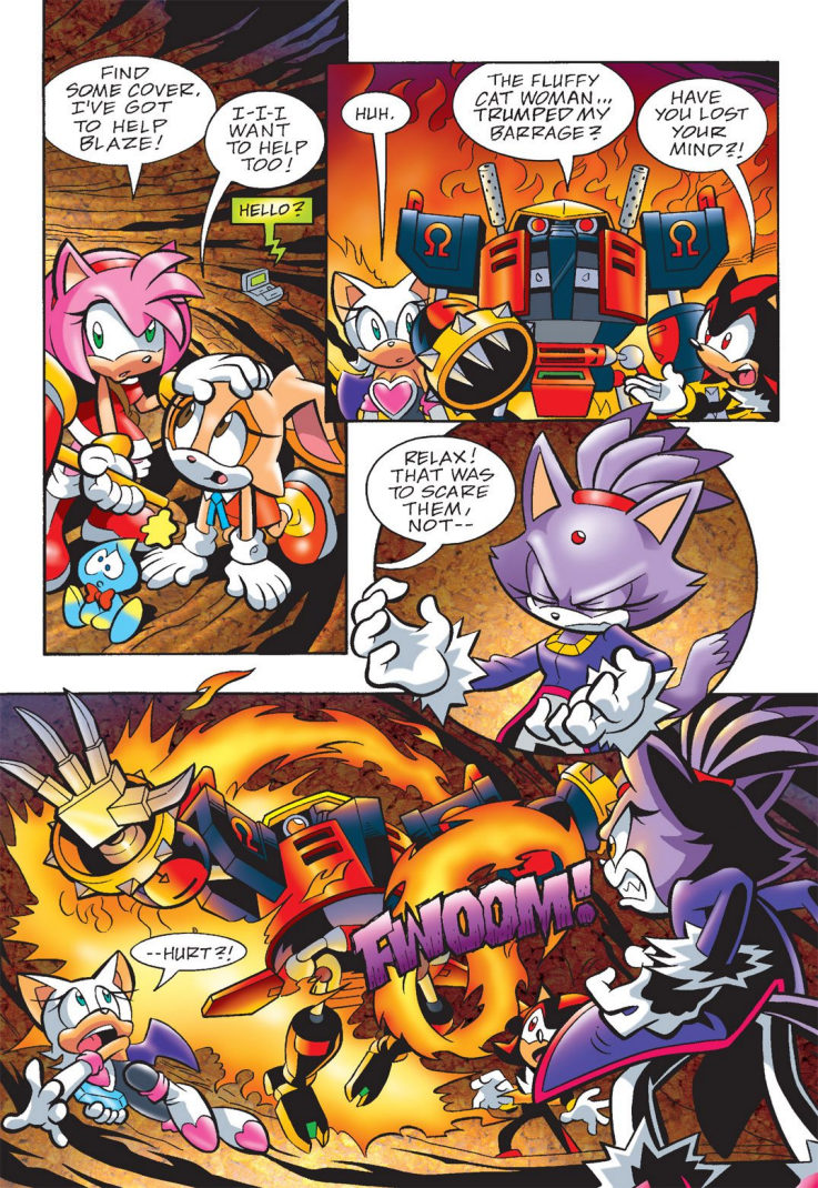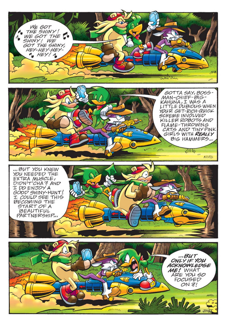 "Treasure Team Tango, Part 2 of 4: The Cruzada" Blaze joins Team Rose as it faces off against Team Dark for the Sol Emerald! But as fire and fists fly, a third team sneaks in to add to the chaos! Who is 'Team Hooligan,' and will they be the ones who come out on top? The laughs and mayhem continue in this latest story arc! |
