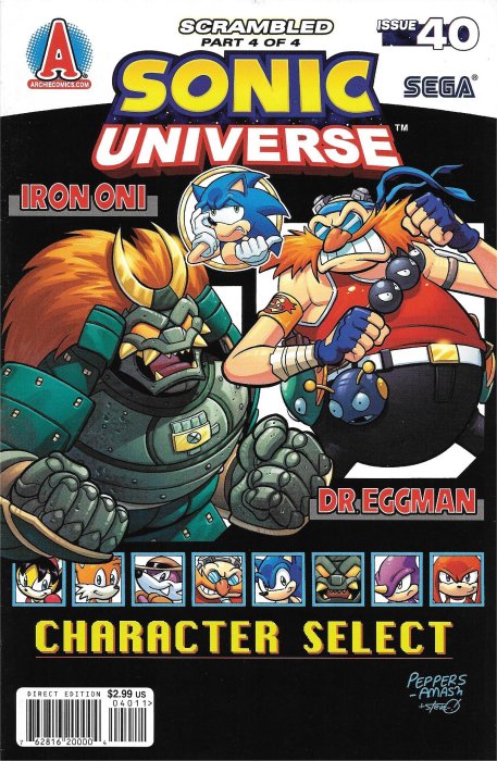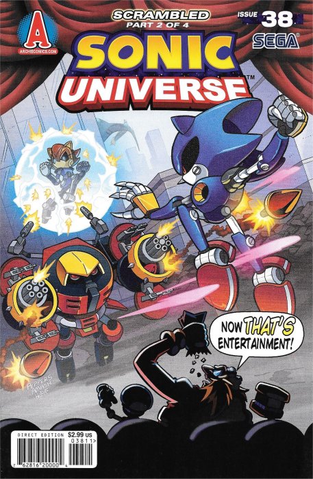 "Scrambled, Part 4 of 4: In the Name of Love!" The explosive conclusion! It's the showdown decades in the making: Dr. Eggman vs. Snively! As the two mad geniuses clash, one thing is for certain: whoever wins, the good guys lose! Don't miss the grueling final fight with a sinister twist you won't believe! |