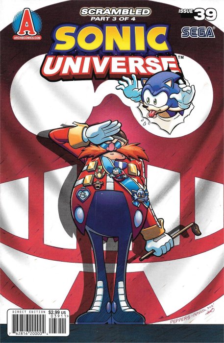 "Scrambled, Part 1 of 4: The Man in Charge" Dr. Eggman is knocked for a loop when the treacherous Snively tries to disrupt the entire Eggman Empire! What is Snively's true ultimate goal? And can Dr. Eggman pull his forces back in line before it's too late? Also featured: the debut of Orbot and Cubot! |