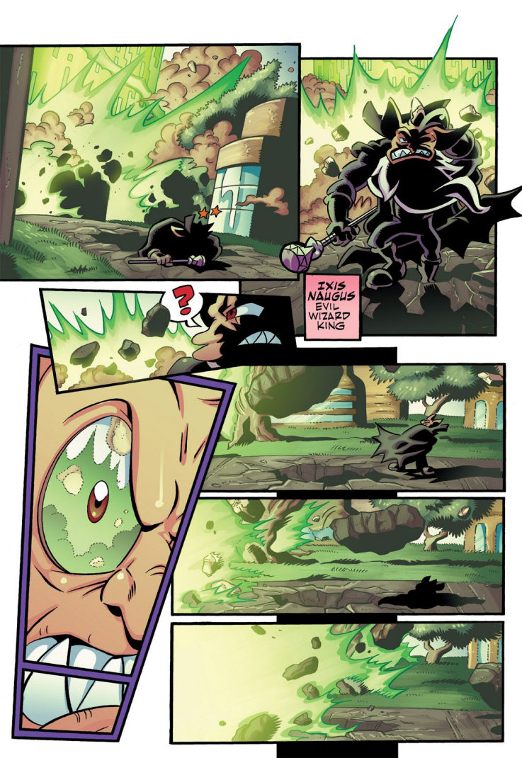 "Scrambled, Part 3 of 4: Line in the Sand" Dr. Eggman has tracked his treasonous lackey, Snively, all the way to the Dragon Kingdom! Snively is out to rescue the love of his life, but will the embittered Iron Queen take him back? More importantly: will the Dragon Kingdom survive a visit from the good doctor? |