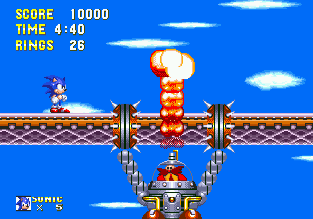 ![]() This final zone can only be reached if Sonic has collected all seven Chaos Emeralds. Super Sonic chases the fleeing Dr. Robotnik through an asteroid field in order to retrieve the Master Emerald. It is a race against the clock as Sonic must defeat Dr. Robotnik prior to running out of his ring energy. |